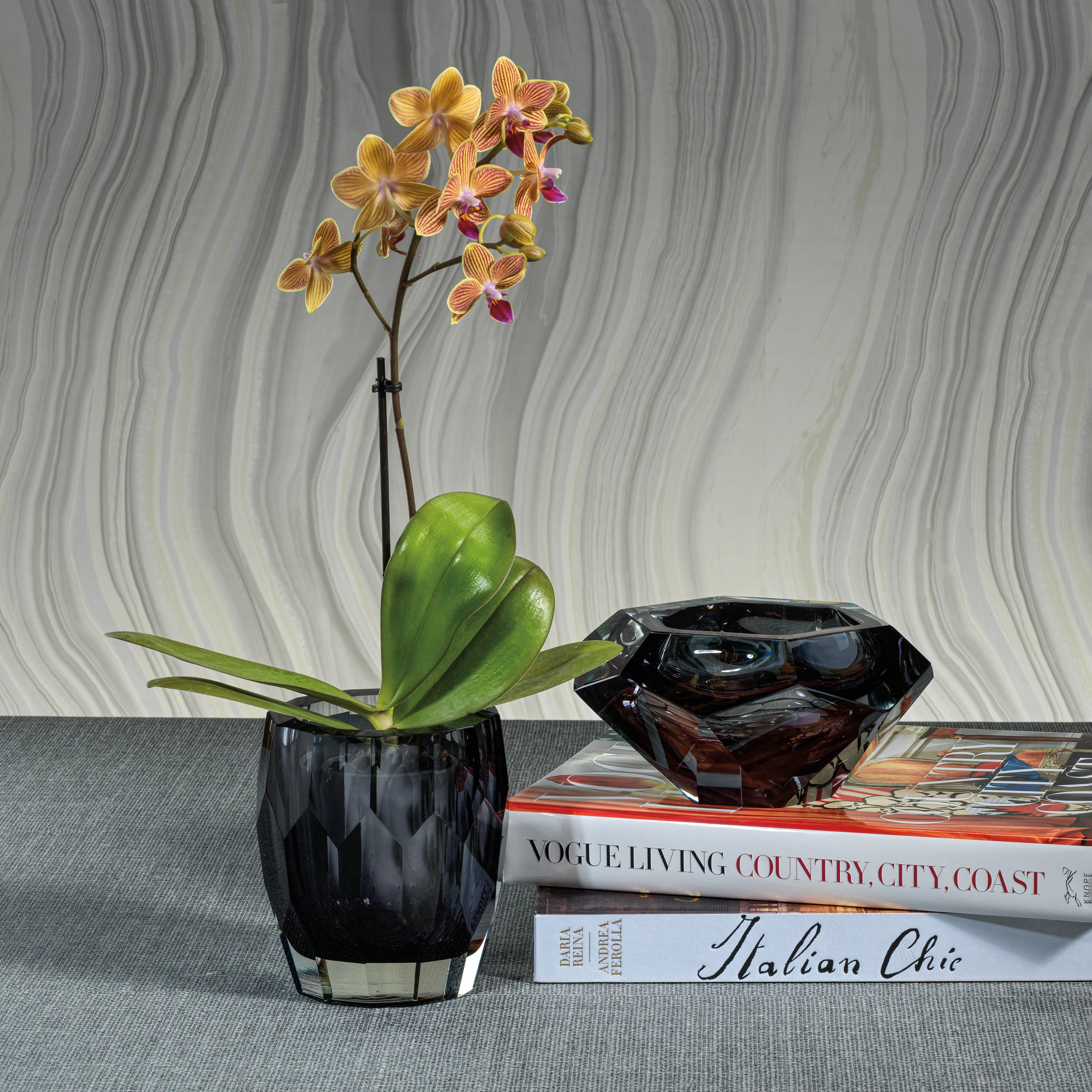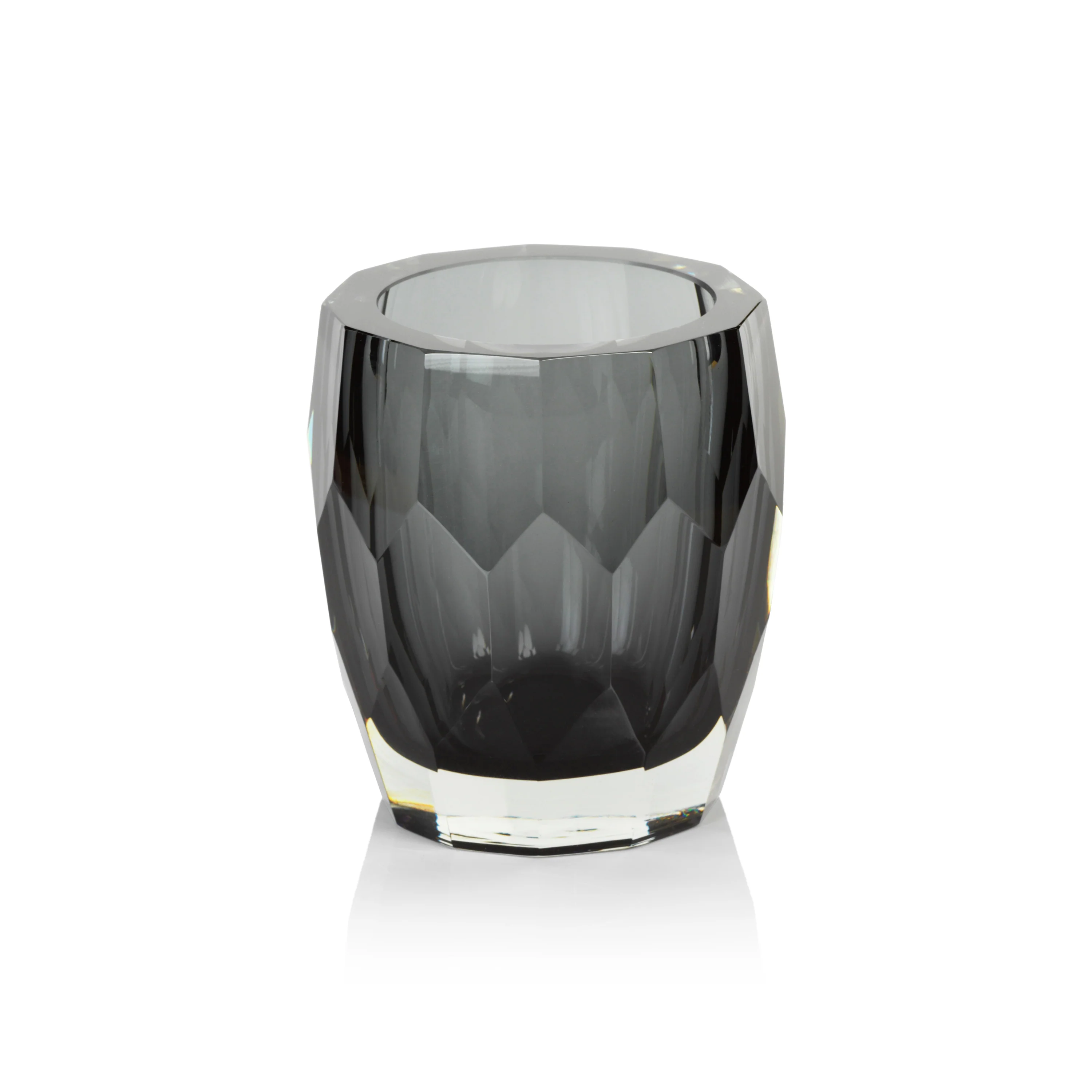 La Boheme Gray Hand Made Cut Polished Glass Vase Hurricane