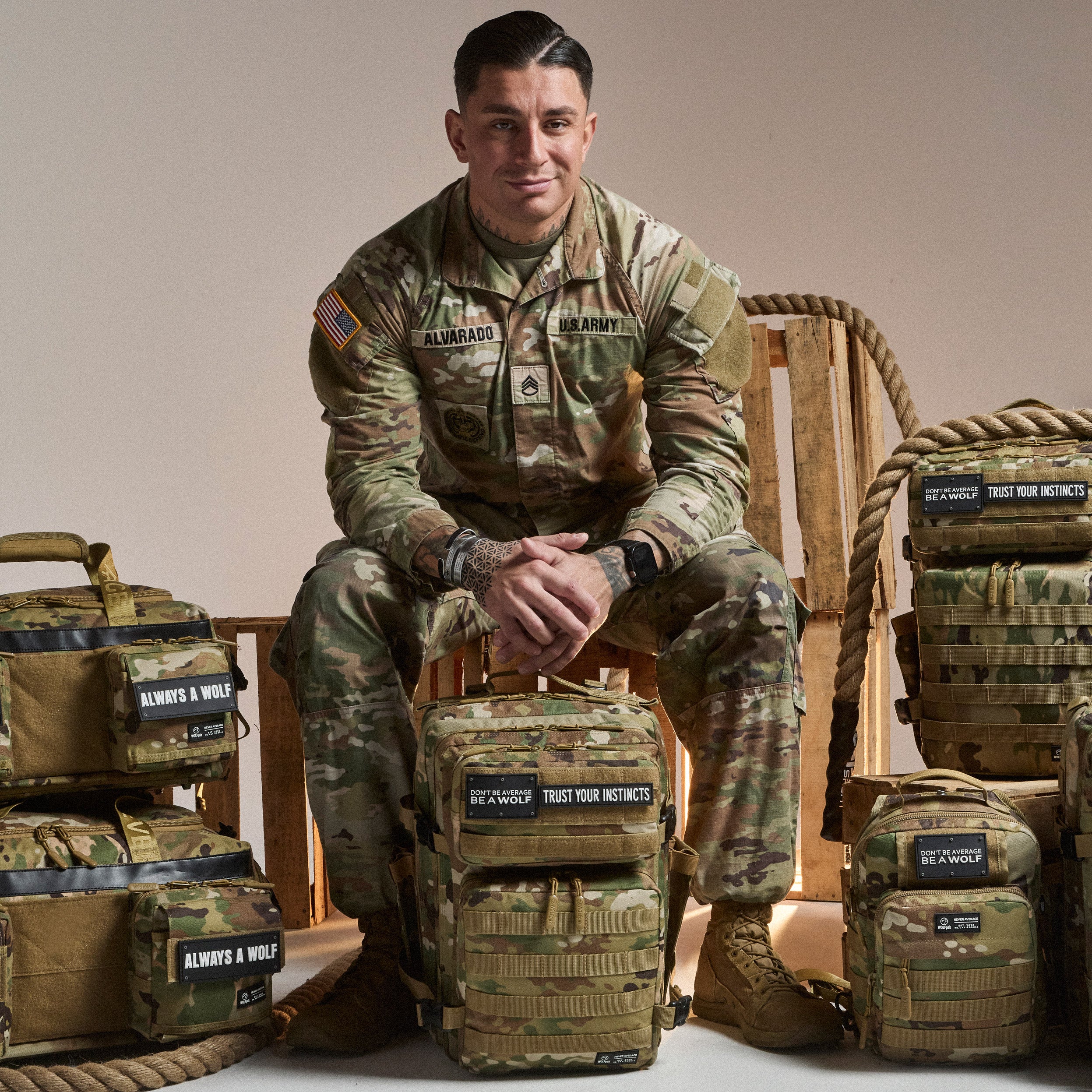 - White on Black Mini Be A Wolf Shoulder Strap Patch Included