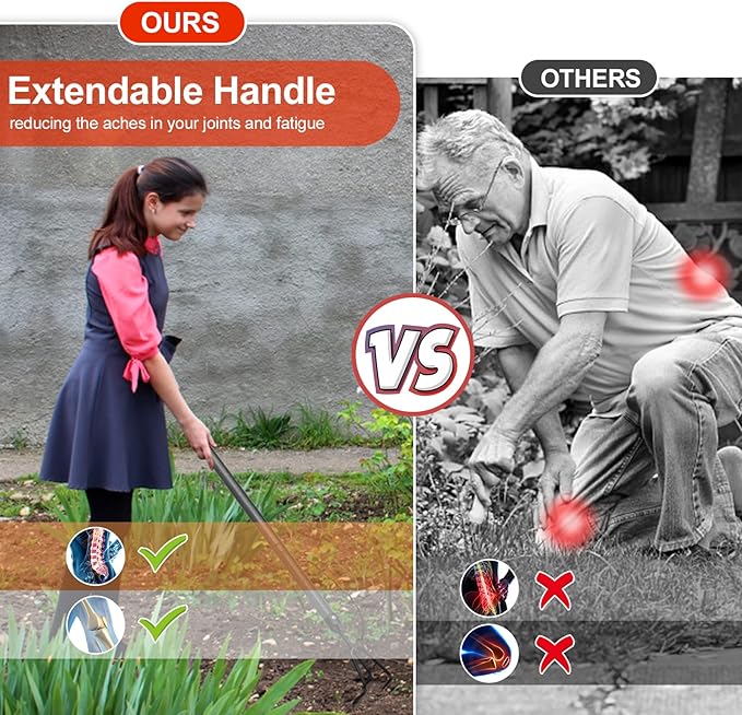 - 銆怶OODEN HANDLE銆?- The gardening tools feature a sturdy construction and thick steel components which promise longevity. The carefully contoured handle made of smooth wood, fits easily in your hand and will reduce the pain of yard work on your hands. Colors are closer to nature.