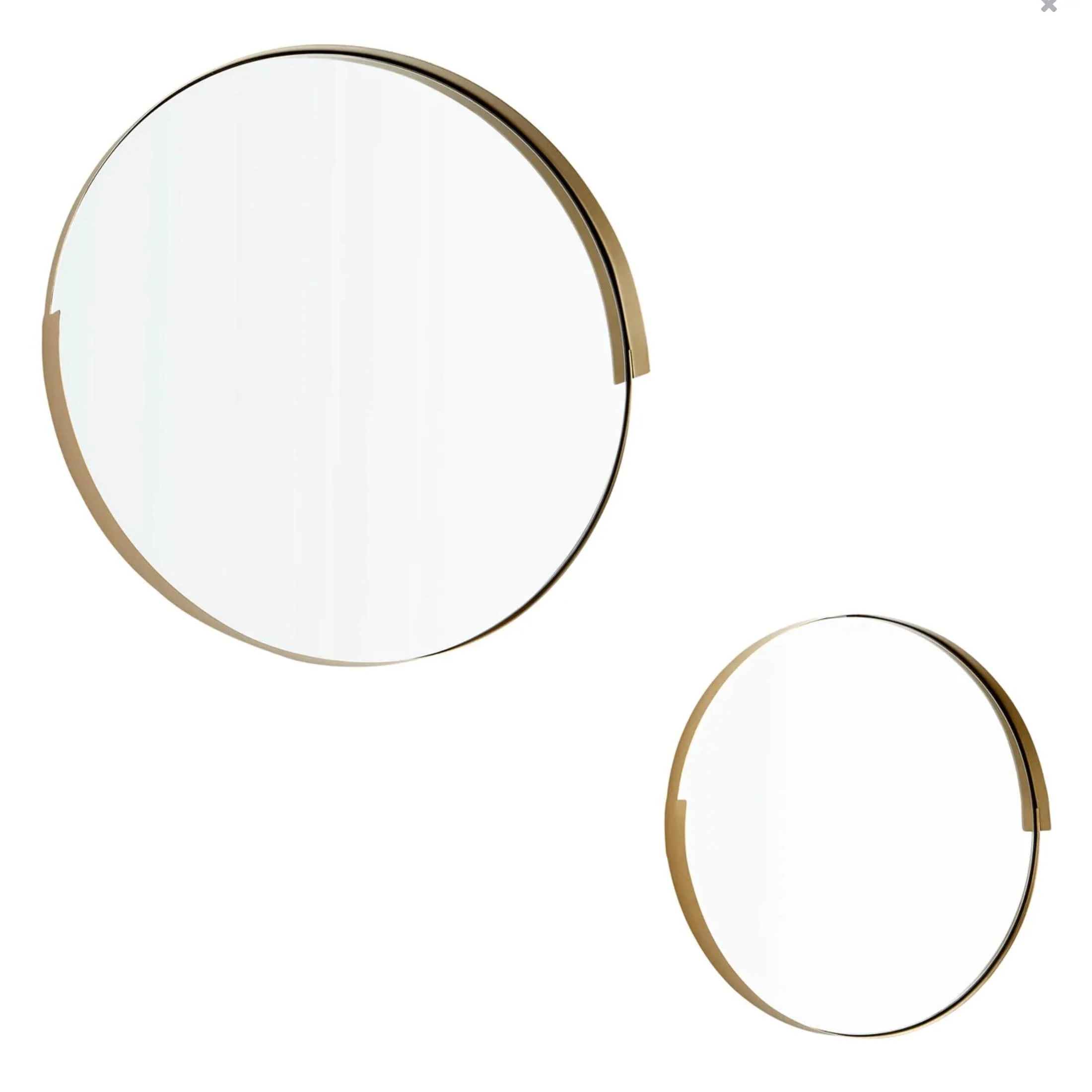 These modern golden circular mirrors add dimension and style to any contemporary bedroom or hallway. Their imperfect geometric iron frames highlight the mirrored glass for a unique look.