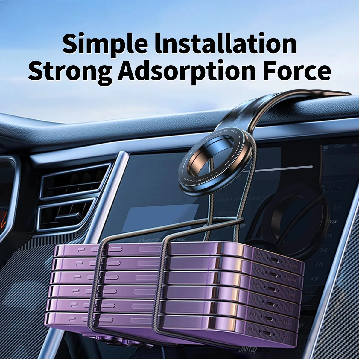 What sets this phone holder apart is its strong magnetic feature. With a powerful magnet that firmly holds your phone in place, you can rest assured that your device won鈥檛 slip, even on bumpy roads. It鈥檚 compatible with iPhones, Samsung, Xiaomi, and most other smartphones, making it a versatile choice for any car and phone user. The magnetic attachment also makes mounting and removing your phone incredibly easy 鈥?just a simple touch and you’re good to go.