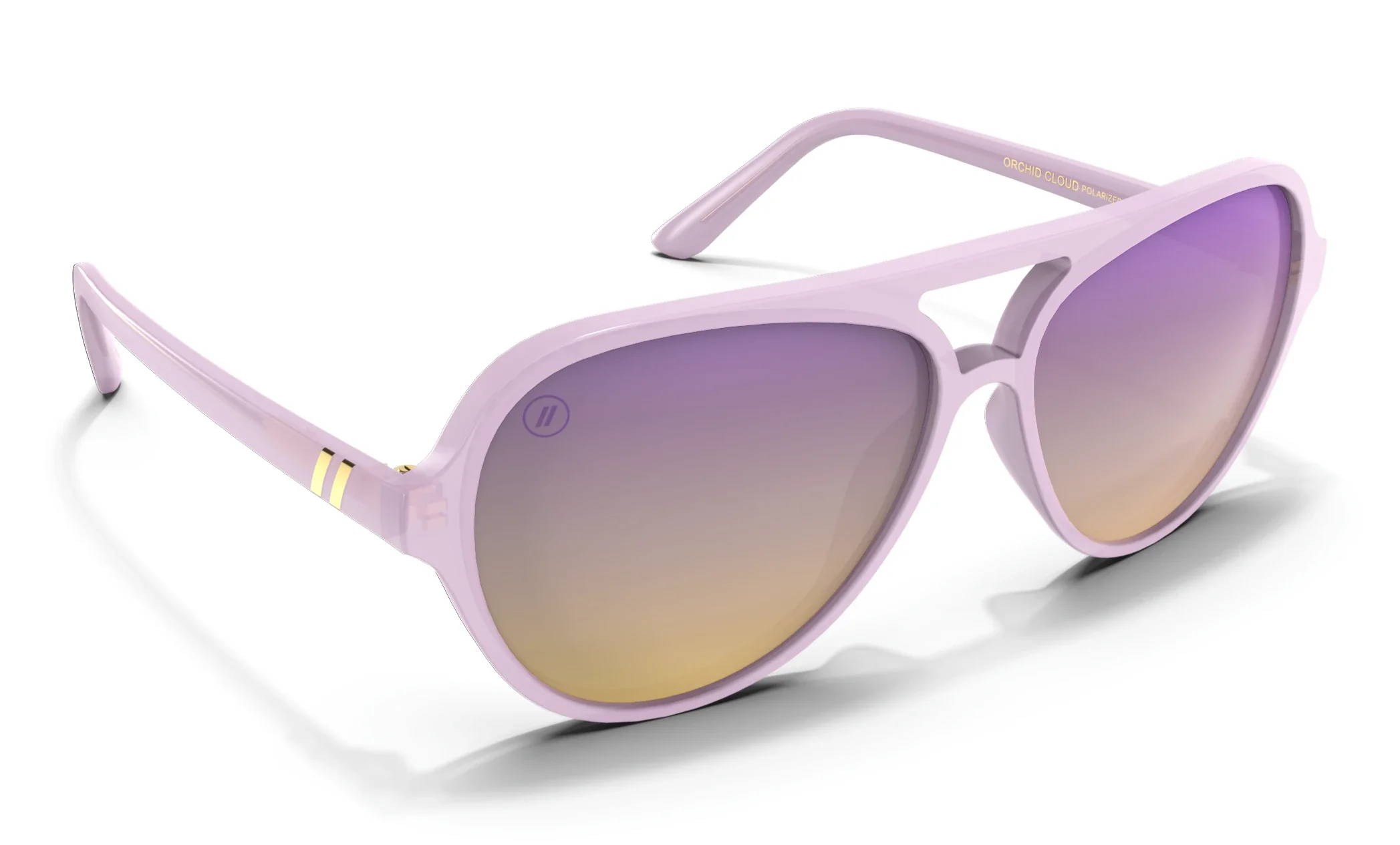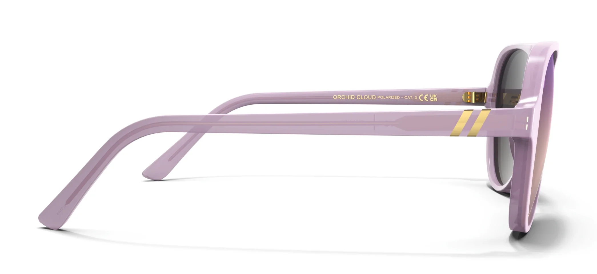 ‘Skyway Orchid Cloud’ is peak chic. Its high-gloss frame and lavender-champagne lenses send your style soaring. Polarized power and a metal core ensure all-day comfort.